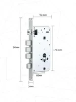 - ثلاثة ألسن داخلية:يوفر القفل الداخلي بثلاثة ألسن إضافية مستوى عالٍ من الأمان، مما يجعل اختراق الباب أكثر صعوبة.